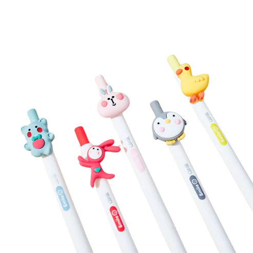 Cada esfero cuenta con un cuerpo blanco y un práctico mecanismo retráctil, lo que los hace perfectos para un uso diario sin preocuparse por tapas perdidas. Los apliques en la parte superior presentan una variedad de adorables figuras de animales.